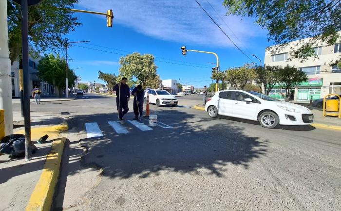 Los trabajos consisten en demarcación de sendas peatonales, reacondicionamiento de rampas para personas con discapacidad, pintado de cordones y reparación de cartelería.